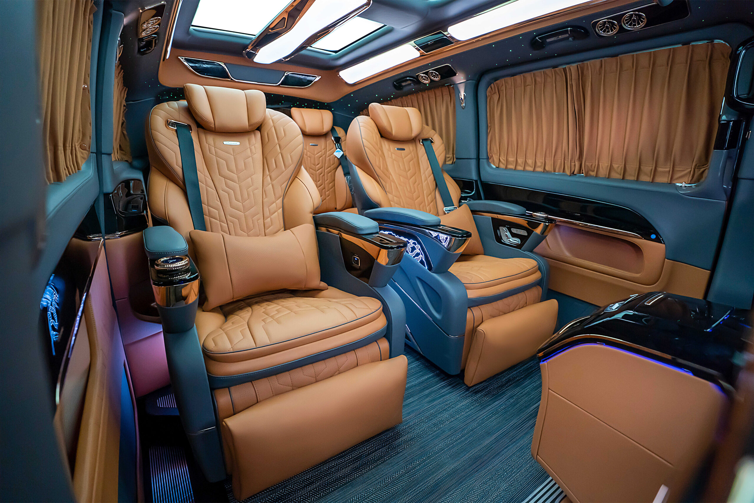 - Customised central armrest with built-in refrigerator and biometric lock
